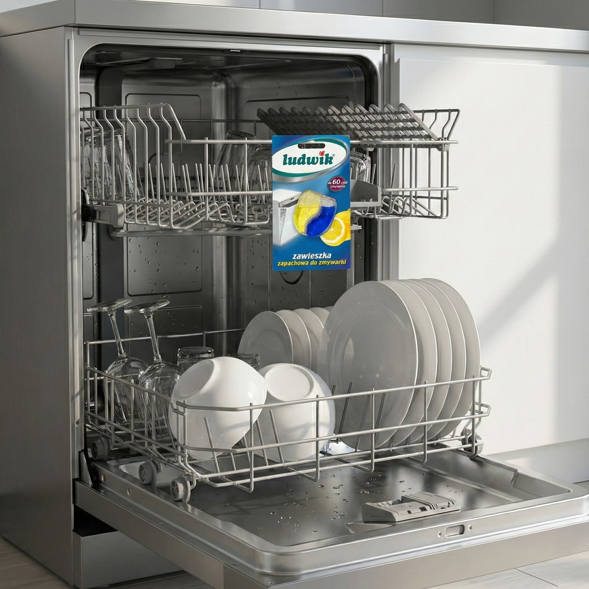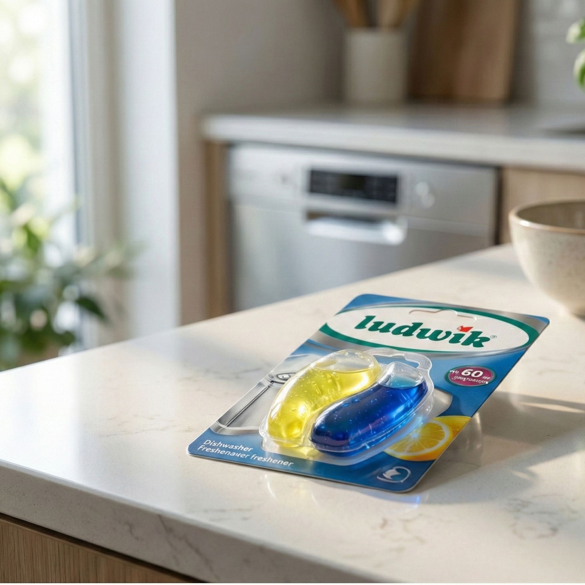 Keep your dishwasher and dishes smelling fresh every day! The Ludwik Dishwasher Air Freshener – Lemon neutralizes unpleasant odors and leaves a lasting citrus scent after every cycle. One hanger lasts up to 60 washes!