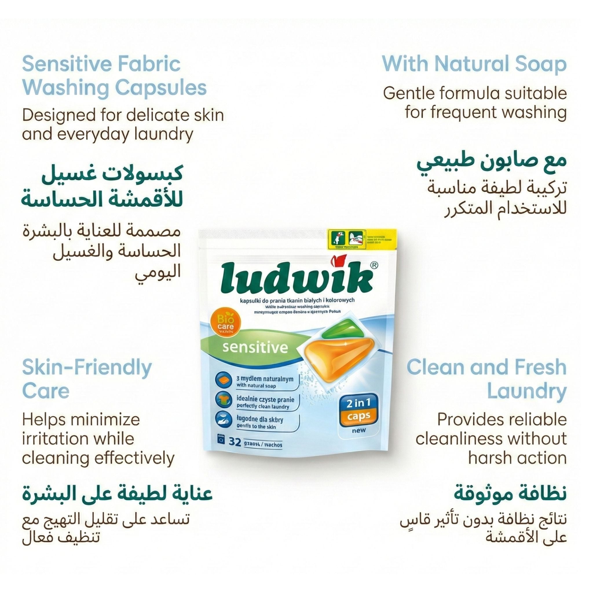 Ludwik Sensitive Laundry Capsules – 2 in 1 (32 Washes)